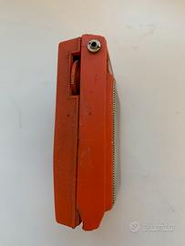 Per appassionati di radiotecnica e collezionisti di modernariato, propongo questa iconica radio a transistor marchio "GRANADA". L'apparecchio si distingue per il suo design compatto e il colore arancione acceso, tipico dell'estetica "Space Age" o Pop Art degli anni '70.