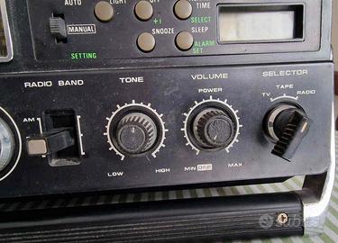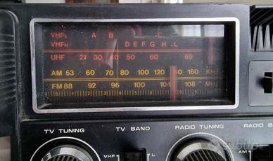 della Incotronic vendo compatto per radio OM e FM, lettore e riproduttore di cassette, registra da microfono inserito nel compatto, e dalla radio, e TV che però non si vede perche i segnali attuali sono digitale mentre le TV aveva i segnali analogici, funziona a corrente 220 volt e 12 volt, inoltre c’è lo scomparto per inserire 9 pile da 1.5 volt , è dotato da un’antenna per ricevere bene i segnali, misure larghezza 40 cm, altezza 34 cm, profondità 13 cm.