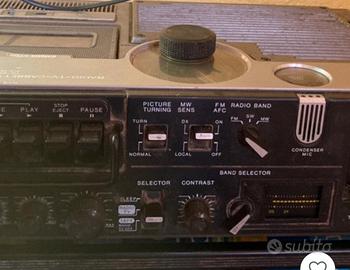 Radio tv mangiacassette portatile vintage marca Jvc modello 360 Eu. La radio e le cassette funzionano mentre la tv ormai non prende causa vecchio sistema di ricezione. Diciamo che ormai è più un pezzo da 'museo' collezione che uno strumento per ascoltare musica. Manca la targhettina/loghetto Jvc.
