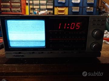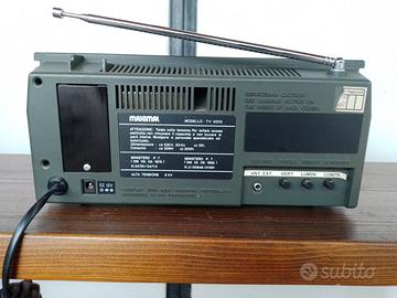 vendo radio/tv/am/fm/orologio/sveglia funzionante, maximal tv-5005, vintage ottima da collezione degli anni 80. vecchio mini tv da comodino o ufficio digitale a led rossi con allarme. completa di cavalletto metallico nella parte sottostante per dare inclinazione all'apparecchio. dimensioni: 27 per 13 per 18 cm.