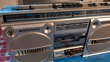 Vecchia radio anni '80, salvata dalla discarica (il circuito originale è distrutto) e aggiornata alle nuove tecnologie, funziona nelle seguenti modalità: radio, presa USB per una chiavetta che contiene i vostri brani preferiti, bluetooth per connessione con lo smartphone, ingresso aux e SD, con telecomando, disponibile per un video del funzionamento...guarda altre radio sul mio profilo...