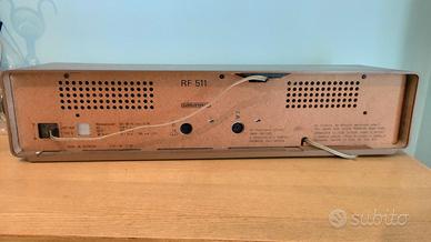 Elegante radio anni '70 marca Grundig modello RF511, perfettamente funzionante Anno di costruzione1974 Banda d'ondaOnde lunghe, onde medie, onde corte, VHF Larghezza/Altezza/Profondità60 / 13 / 16 cm Peso 3.2 kg