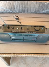 Boombox Sanyo vintage con doppia cassetta e radio FM/AM/SW Vendo boombox Sanyo originale anni ’80/’90, perfettamente funzionante a livello estetico. ✔ Radio FM/AM/SW ✔ Doppio mangiacassette (Deck A + B) ✔ Funzione registrazione/dubbing ✔ Altoparlanti stereo integrati ✔ Design vintage retrò molto bello da collezione 📦 Condizioni: molto buone Oggetto ideale per collezionisti, amanti del vintage o arredamento retrò. 💬 Prezzo trattabile