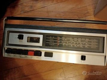 Radio vintage anni'60 con onde medie, corte e ultrà corte. Riproduttore funzionante, anche se il movimento degli ingranaggi non è completamente fluido.