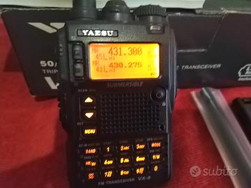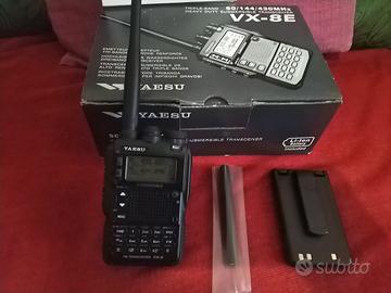 vendo radio tribanda portatile yaesu vx 8 analogico gia espanso in frequenza usato veramente poco con in piu 1 batteria suplementare nuova ,a 300 euro non trattabile se spedizione piu 10 euro ,astenersi perditempo curiosi indecisi ecc ecc ,solo veramente interessati e patentati ,contatto mail ,per il pagamento solo bonifico bancario o ricarica poste pay no subito .it ,no scambi no permute solo cash. no cb icom yaesu kenwood vertex standard wouxun quansheng motorola retevis polmar anytone tyt leggere bene prima di scrivere . si vende solo a radioamatori con regolare licenza e patente .