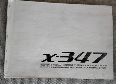 Radiocontrollo per Aeromodelli PCM X-347, adatto al pilotaggio di aeromodelli acrobatici, alianti ed elicotteri, ottimamente tenuto, completo di accessori, scatola, manuale d'uso sia in italiano che originale in inglese.