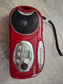Bellissima radiolina portatile colore rosso ferrari. Funzionante, in ottime condizioni. Marca Toly. Con scomparto per le videocassette.