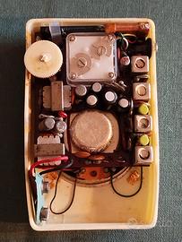 Rara Radiolina Vintage Ross Triumph De Luxe – 6 Transistor – Giappone anni '60 – Funzionante con Custodia Originale un iconico esempio di design tecnologico della "Transistor Era": la radio tascabile Ross Triumph modello De Luxe. Prodotta all'inizio degli anni '60 (circa 1960-1962), questo esemplare incarna l'estetica "Space Age" dell'epoca con la sua scocca color avorio e i dettagli dorati. Caratteristiche Principali: Marca: Ross Triumph (Ross Electronics Corp.) Modello: De Luxe - 6 Transistor + Origine: Prodotta in Giappone (Japan) Condizioni estetiche: Eccellenti per l'età. La scocca in plastica non presenta crepe o scheggiature evidenti. La griglia metallica dorata conserva la sua lucentezza originale. Stato di funzionamento: Testata e funzionante. La radio si accende e sintonizza le stazioni AM con la tipica sonorità calda dei dispositivi a transistor dell'epoca. Accessorio incluso: Custodia originale in pelle/similpelle inclusa, un dettaglio raro da trovare che ne aumenta il valore collezionistico. Dettagli Tecnici: Il circuito a 6 transistor garantiva una ricezione superiore per le dimensioni compatte dell'oggetto. Un pezzo immancabile per i collezionisti di radio d'epoca o per chi desidera un oggetto d'arredo vintage autentico e funzionante. DATI TECNICI Numero di transistor 6 Semiconduttori Principio generale Supereterodina (in generale); ZF/IF 455 kHz; 2 Stadi BF N. di circuiti accordati 5 Circuiti Mod. Amp. (AM) Gamme d'onda Solo onde medie (OM). Tensioni di funzionamento Batterie a secco / PP3: 1 x 9 Volt Altoparlante AP magnetodinamico (magnete permanente e bobina mobile) / Ø 2 inch = 5.1 cm MaterialiElectronic Accessories Plastica (non bachelite o catalina) Radiomuseum.org Modello: Ross Triumph 6 Transistor de Luxe TPR-561 - Ross Electronics Corp.; Forma Tascabile (portatile molto piccola), < 20 cm Dimensioni (LxAxP) 71 x 110 x 36 mm / 2.8 x 4.3 x 1.4 inch Annotazioni Ross Triumph Model TPR-561. AM only. Easel stand in back.