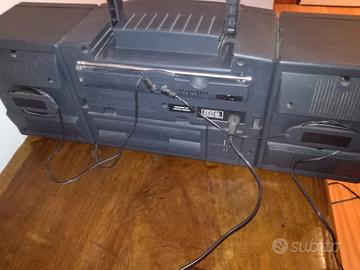 Vendo radio stereo registratore di cassette Philips AW 7520. Casse con filo staccabili. Radio FM. Alimentazione elettrica o pile (6 di tipo R20, UM1 o D). Dimensioni 60x20x15 cm. Provvisto di maniglia di trasporto. Cassetta doppio lettire+registrazione. Perfettamente funzionante.
