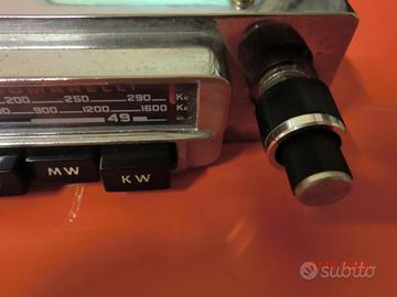 Come da titolo, ha rivisto la luce dopo 50 anni, autoradio Radiomarelli modello AR 106 (direi anteriore al 1970), alimentata a 12V, l'autoradio si accende, si illumina la scala frequenze di un molto tenue azzurro/verde e, dall' altoparlante collegato escono rumori e stridii (ho messo soltanto un pezzo di filo come antenna), i selettori delle gamme di frequenza funzionano, girando la manopola della sintonia cambia il modo di gracchiare e squittire sulle tre gamme, la regolazione del volume funziona, la regolazione dei toni funziona, l' interruttore di accensione a pulsante funziona, chi conosce l' oggetto é a conoscenza che la doppia (finta!) manopola di destra, non ha due funzioni ma regola esclusivamente la sintonia, unici interventi che ho fatto: Ho messo due gocce di attack su un pezzettino di plastica della manopola di sintonia nella parte posteriore (non si nota nemmeno), ho etichettato i conduttori di ingresso/uscita, non ho fatto altre prove, non posso metterla chiaramente in vendita come usata, ha sicuramente bisogno di qualche amorevole cura, il prezzo é trattabile entro decenti limiti, vi chiedo soltanto di fare offerte solo se veramente interessati, disponibile per darvi altre info oppure altre foto di dettaglio, informazioni ulteriori su questo modello potete trovarle facendo una semplice ricerca in internet; Una volta spedito l' oggetto non ne accetterò la restituzione, nessuna garanzia é offerta, l' oggetto é in vendita con la formula visto e piaciuto, come venditore privato non posso emettere fattura e nemmeno scontrino fiscale. p.s. 9 euro per la spedizione sono tanti lo so, é purtroppo il costo vivo che devo sopportare con poste italiane, per questo, preferirei il ritiro a mano con reciproca soddisfazione.