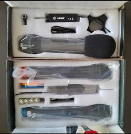 6) doppio radiomicrofono, frequenza di trasmissione 560.10 e 578.60, completo di batterie litio nel ricevitore, il trasmettitore funziona con 2 batterie aa(stilo) 4 batterie in dotazione. Cavo di ricarica, 2 anelli colorati, già testato e perfettamente funzionante, prezzo 29 euro.