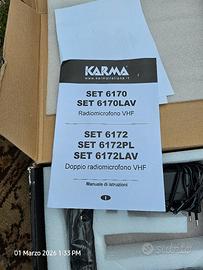 Vendo sistema radiomicrofono professionale Karma Italiana modello SET 6170 per inutilizzo. Il prodotto è nuovo, mai uscito dalla scatola e completo di tutti i suoi accessori originali.
