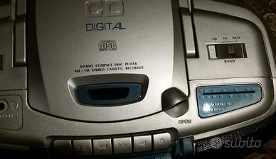 Radioregistratore CD stereo Roadstar funzionante a 230v o con pile mezza torcia,con vano porta cavo o pile di scorta, attacco per cuffia