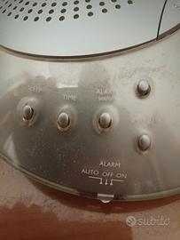 Radiosveglia con funzione snooze comoda da raggiungere. Ora, data e sveglia rogrammabili. Radio FM /AM. Si può usare anche con batteria.
