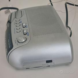 Radiosveglia digitale Panasonic RC 6299 FM AM clock radio grigia funzionante Radiosveglia digitale Panasonic Modello RC - 6299 FM AM clock radio Colore grigio - argento Misure: cm 23,00 x 14,50 x 6,50 di altezza circa Peso di 625 grammi La radiosveglia viene fornita con cavo di alimentazione, cavo antenna, batteria 9 V (tampone, back-up for memory) e manuale istruzioni. Made in China Radiosveglia Panasonic usata, che presenta dei segni di usura e di contatto, come mostrato in fotografia. La radiosveglia è stata testata ed è funzionante; la batteria fornita salva le impostazioni dell'orologio e della sveglia, nel caso di un'interruzione di corrente. Nel complesso, la radiosveglia è in buone condizioni. Posso fornire ulteriori fotografie a richiesta. L'articolo viene imballato con cura usando pluriball e altro materiale da imballaggio. Nella preparazione del collo per la spedizione sarà utilizzato, per quanto possibile, materiale da imballaggio di recupero.