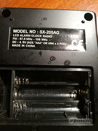 Panashiba TRAVEL MATE Model No SX-205 AG LCD Alarm Clock Elegante Radio Radiosveglia Portatile vintage. FM 87,5 M Hz – 108 M Hz DC 4,5 V Dimensioni :12X7,5X3 cm