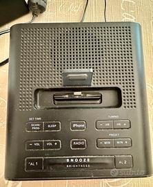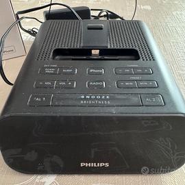 Radiosveglia Philips per iPod/iPhone AJ3275D/12 perfettamente funzionante con il suo imballo originale. Compatibile con ipod ed iphone mediante connessione lightning. Sintonizzatore FM digitale con preimpostazioni,