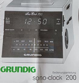 Radiosveglia Sono Clock 200 Marca Grundig vintage per estimatori anni '80 color argento perfettamente funzionante - libretto originale delle istruzioni