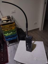Lafayette Explorer, un classico "baracchino" CB (Citizen Band) molto popolare negli anni '80. Opera sulla banda cittadina dei 27 MHz (AM). Canali: Dispone di 3 canali selezionabili tramite un interruttore a scorrimento, solitamente con il canale 27.085 MHz preinstallato. Controlli: Sul pannello frontale sono presenti le manopole per il Volume (che funge anche da interruttore ON/OFF) e lo Squelch, oltre a un indicatore analogico per lo stato della batteria. Alimentazione: Funziona tipicamente con 8 batterie stilo AA (9.6-12 VDC). Funzionante come da foto con una batteria 9Volt mentre il vano slot per le 8 pile stilo avrebbe bisogno di una pulita. Ma per il resto, a parte i segni di usura del tempo, è tutto funzionante In allegato anche la sua custodia in pelle nera anche se un po' rovinata, ma recuperabile