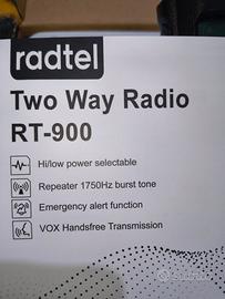 Rtx portatile Radtel RT 900 BT, apparato nuovo, programmato e richiuso nella scatola. Riceve ampia frequenza, air band ecc, si programma dal cellulare e trasmette con 8 watt di potenza.