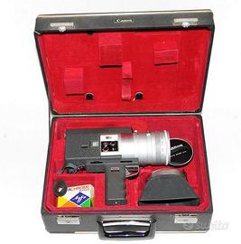 Vendo come da titolo rarissima Canon Autozoom 1218 Super 8, per intenditori e appassionati. Qualsiasi prova. Lens Focal Length/Speed: 7.5 - 90mm f/1.8 Inner diameter: 82 mm, outer diameter: 85 mm. Zooming Ratio 12x Focusing Manual, 1.8 m to infinity Zooming Dual speeds power zooming. High-speed: 3 - 6 sec. Low-speed: 10 - 12 sec. Manual zooming. Zooming range can be limited. Filter 82 mm. filters (series IX) Viewfinder Type: single-lens reflex with non-reverse image Information: Aperture value, exposure meter needle, over/under exposure warnings Rangefinder Split-image Exposure Control Type: EE with built-in TTL super high sensitive CdS exposure meter, powered by two 1.3 V H-D mercury cells. Automatic aperture setting coupled to loaded film speed and shooting speed. Exposure Meter Built-in TTL CdS exposure meter Metering Range Entire range of ISO 250 f/1.8, 18 fps - ISO 16 f/16, slow motion Film Speed Automatic ISO setting by film cartridge Tungsten type film: ISO 25, 40, 64, 100, 160 and 250 Daylight type film: ISO 16, 25, 40, 64, 100 and 160 CCA Filter Built-in color conversion filter A to use tungsten type film under daylight. This filter is automatically cancelled with loading of a daylight type film cartridge. Manual cancellation possible. Manual Aperture Setting Shooting at any manual aperture setting is possible. Fading out/in is possible using a ND filter and manual aperture setting together. Film Drive Type: Power filming by a high performance micro-motor Filming Speed 18, 24 fps, slow motion (approx. 45 fps) and single frame (with a cable release) Power Source Five AA batteries. Sufficient for 15 cartridges under normal temperature. Shutter Shutter Opening: 165 degrees Release Sockets Sockets for cable release, remote control and single frame Shutter Lock Dial Running lock for continuous shooting and release lock to prevent accidental shutter release (dial type). Dimensions (W x H x D) 89 x 104 x 256 mm Weight 2000 g