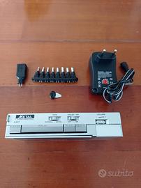 Riproduttore vintage rarissimo, inizio anni '80, conservato con molta cura. Può funzionare a pile o con alimentatore 6V (fornito). Non essendo stato usato per oltre 20 anni, necessita di una revisione per ripristinare il suo corretto funzionamento. Effettuato un test con alimentatore esterno, il dispositivo si accende, si sente il motorino che gira ma non trascina il nastro.