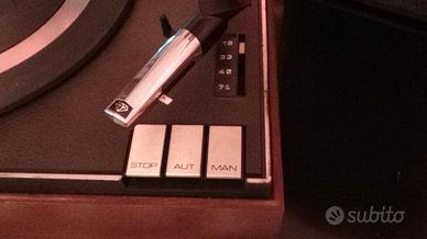 Rarità assoluta made in Germany classe 1969. Appena revisionato da tecnico specializzato quindi perfettamente funzionante e pronto all'uso. Riproduce 4 diverse velocita' e puo' essere usato manualmente o automaticamente. Cedo completo del suo stacking spindle per ascoltare in successione automatica un disco dopo l'altro (peculiarità di questo apparecchio). Ovviamente dispongo di coperchio (integro) originale e il connettore esce con un classico din. NON SPEDISCO perchè MOLTO FRAGILE (scusatemi). Disponibile al ritiro a mano dopo prova d' ascolto (suona molto bene specialmente se accoppiato ad un'ampli al germanio o valvolare Philips di quei tempi ). Annuncio dedicato ad appassionati e cultori di apparecchi HI-FI d'epoca.