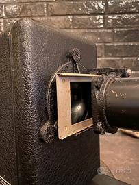 Realizzato in metallo e rivestito in un elegante rivestimento nero martellato, questo strumento era usato per proiettare lastre fotografiche o diapositive, probabilmente destinato a studi fotografici o presentazioni scientifiche del tempo. La base solida e i dettagli meccanici rivelano un design funzionale quanto affascinante.