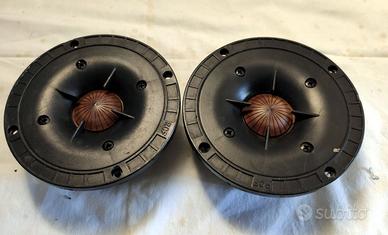 RCF TW-980 Tweeter alta efficienza alta dinamica (tipo Klipsch JBL) Coppia di tweeter del famoso costruttore italiano, creati per realizzare diffusori ad alta efficienza (ben 96dB) e ad alta dinamica per applicazioni sia audio che professionali. Le ottime prestazioni sonore li rendono indicati anche come tweeter in sistemi hi-end con amplificatori a valvole. Buone condizioni estetiche ma perfettamente integri e funzionanti (ho il video dimostrativo che non posso pubblicare per problemi di copyright delle musiche usate) in quanto revisionati da centro assistenza autorizzato. Davvero stupefacenti e dalle prestazioni sonore insospettabili. Sono presenti alcuni piccoli segni dovuti all'uso e al tempo.Prezzo alla coppia. Trattasi di vendita fra privati senza garanzie, visti e piaciuti. Diametro 135mm, diametro foro 106mm, profondità 42mm