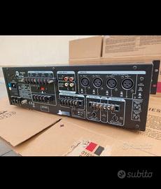 Vendo in ottime condizioni tranne il lettore CD che non legge bene, probabilme laser da pulire. RCF EL 2126 CD TUNER AMPLIFICATORE 4 zone regolabili singolarmente ecc ecc Specifiche: -Potenza uscita: 120W RMS - Lettore CD multiplo con cambio CD automatico per 6 dischi - Sintonizzatore FM digitale con stazioni memorizzabili - Display LCD multifunzione retroilluminato - 4 ingressi universali XLR con comando volume e interruttore alimentazione phantom 21V - - Ingresso Line-Level con precedenza generale ad attivazione vocale per annunci prioritari - - Ingresso Aux RCA-Stereo per sorgente esterna - - Priorità ad attivazione vocale (VOX) dei primi 2 ingressi universali sugli altri ingressi - Uscita REC/LINE su connettore RCA-Stereo - Controllo generale volume con Vu-meter a LED - Controlli toni Treble/Bass sull'uscita dell'amplificatore e su 2 ingressi universali - Generatore toni di preavviso (DIN-DON) incorporato con attivazione remota tramite contatto - Generatori di SIRENA incorporati (mono e bitonale) con attivazione remota tramite contatti esterni - Uscita a tensione costante 70V/100V con selezione per 4 linee di diffusori - Uscita diffusori ad impedenza costante 4/8/16 Ohm - Raffreddamento a convezione d'aria per un lungo funzionamento senza manutenzione -Possibile montaggio a rack 3U da 19" modulazione di frequenza (FM) CD-Player, -Writer, MD, MOD (audio) Rete / Batterie di accumulatori (eventualmente anche le batterie) / 115; 230 / 24 DC Volt Questo apparecchio richiede altoparlante/i esterno/i. Potenza d'uscita 120 W Materiali Mobile di metallo Forma Rack -Dimensioni (LxAxP) 430 x 130 x 310 mm / 16.9 x 5.1 x 12.2 inch -Peso netto 23 kg / 50 lb 10.6 oz (50.661 lb) -Codice: EL2126 Ideale per impianti fissi tipo: bar , ristoranti, locali, officine, studio, ufficio, chiese, negozi ecc Compatibile con Solid State Logic, Neve, API, Rupert Neve Designs, Avid, Harrison Audio, Trident Audio Developments, Midas, DiGiCo, Yamaha, Lawo, Studer, Calrec, Soundcraft, Allen