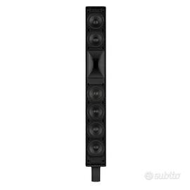 Caratteristiche Risposta in frequenza: 40 Hz – 20000 Hz SPL Max @ 1 m: 130dB Angolo di copertura orizzontale: 120° Angolo di copertura verticale: 40° Driver a compressione: 0.75’’ neo, bobina da 1.75’’ Trasduttori fullrange: 6 x 3.0’’ neo, bobina da 1.0’’ Woofer: 12’’ con bobina da 2.5’’ Potenza totale: 2100 W Peak Peak Ingressi: segnale bilanciato/sbilanciato con connettori XLR e Jack Preset DSP: Linear, Live, Club, Voice Dimensioni (LxPxA): 350 x 462,6 x 2080 mm Peso: 29 Kg Caratteristiche Mixer Processamento digitale: sample rate 48 kHz con DSP a 32-bit Ingressi audio: 4 Mic/Line Combo con guadagno programmabile Ingressi stereo: 1 Line TRS, 1 Line minijack 3,5 mm Streaming audio Bluetooth: ingresso stereo Bluetooth® 5.3 Uscite audio: MIX OUT XLR bilanciata e AUX OUT XLR bilanciata Uscita cuffie: minijack stereo da 3,5 mm assegnabile Interfaccia utente: display a colori touch capacitivo da 2,4” Controlli: 7 encoder endless con pulsante programmabile Elaborazione canali: HPF, EQ a 3 bande e compressore 1-knob (CH 1–4) Effetti interni: riverbero stereo digitale con ducker integrato