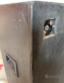 RCF L18p300 in cassa (cm 60 la x 70 ha x 32 pr), subwoofer bass reflex per HiFi /car o ampli basso, in buone condizioni estetiche e di funzionamento con assorbente, piedini, 4 angoliere, 2 maniglie, 2 cavi di potenza con uscita a jack 6,3 mm e speakon.