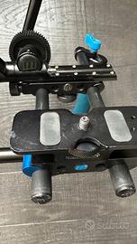 Redrock micro “Captain Stubling” DSLR Rig Rig con follow focus adatto principalmente a CAmere DSRL per riprese video. Con aggiunta di anelli-adattatori di 3 dimensioni per vari obierttivi. Frusta per messa a fuoco. base per cavalletto aggiuntiva. Snodi e braccetti