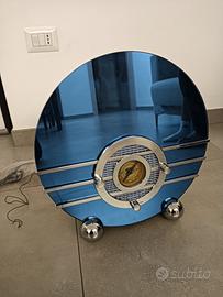 Versione specchiata blu 40x40 cm con 18 cm di profondità,ha la possibilità di ascoltare anche le vecchie cassette con funzione autostop... bellissima.