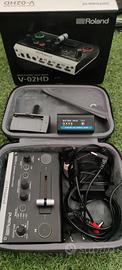 Roland V-02 HD è un mixer / switcher con elaborazione audio ed effetti di transizione video per regie e dirette streaming. Qualità senza eguali con corpo in metallo e dissipazione del calore può gestire segnali a/v in fullHd a 10bit 4.4.4. Customizzato per essere utilizzato anche senza alimentatore ma con batteria a lunga durata montato direttamente su treppiede! Il kit include Mixer, alimentatore, batteri pack con speciale cavetto, piastra e batteria a lunga durata con case rigido di trasporto. Usato pochissimo e in perfette condizioni Visionabile di persona a Torino con vostra attrezzatura Non spedisco No perditempo tag videomaker, streaming, regie, dirette, audio, hdmi, eventi, concerti, spettacoli