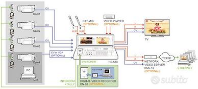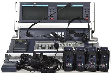 la regia è in perfette condizioni, solo qualche spugna delle cuffie è usurata. l'apparato è stato usato pochissimo in una sala di registrazione e 3 volte in esterno, per convegni, dirette live su schermi giganti e dirette streaming. è completa del suo case originale.