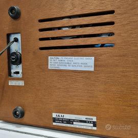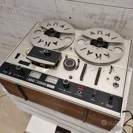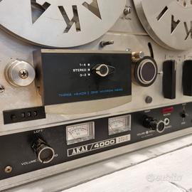 Vendo registratore a bobine vintage marca AKAI mod. 4000 perfettamente funzionante e con pezzi originali. Si tratta di un dispositivo stereo a 4 tracce prodotto negli anni '70. È dotato di VU meter analogici per monitorare i livelli di registrazione. Compreso nel prezzo 2 bobine in alluminio originali akai e 4 bobine da ascolto