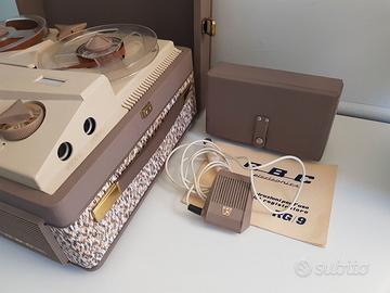 Registratore a bobine GBC anni ’60 a valvole, tre motori diretti con microfono e libretto, diametro della bobina 15cm. Pulito e revisionato, funziona perfettamente vendo a € 50,00.