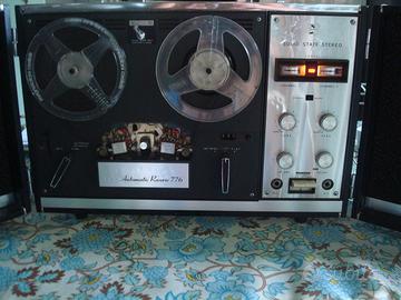 Registratore a bobine professionale portatile con casse staccabili anni 60 National Panasonic RS-776S Auto Reverse in buone condizioni come da foto mancante coperchietto copritestine e da rivedere cinghia capstain in quanto dopo lungo inutilizzo nn gira piu..gli avanzamenti funzionano e il conter pure,audio si sente.... modello raro x collezionisti ed amatori reel to reel molto bello e pesante,venduto nello stato in cui si trova,euro 100Tel.3383385997