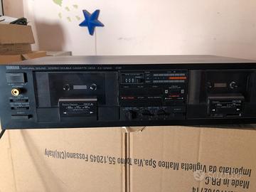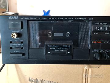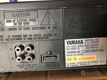 Registratore a cassetta Yamaha KX-W500 Registratore a doppia cassetta stereo con inversione automatica e riduzione del rumore Dolby B, selezione automatica del tipo di nastro con supporto per nastri normali, cromati e metallici, trasporto inverso automatico a cinghia.