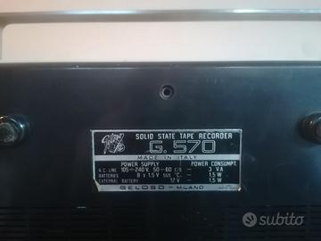 Registratore a nastro magnetofono GELOSO G.570 Funziona bene tutto, posso inviare video di prova funzionamento. Completo di nastro originale.