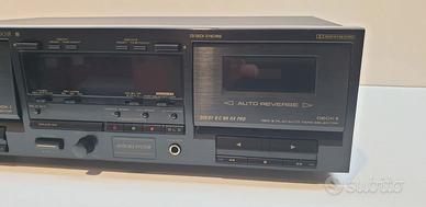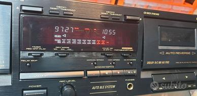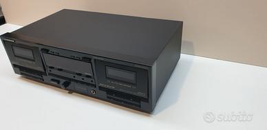 Registratore/Lettore cassette completamente revisionato. Fatta sostituzione cinghie, Azimut, controllo velocità, pulizia parti meccaniche, controllo livelli di registrazione e ascolto, bilanciatura BIAS, Sistema con DOLBY HX-PRO. ESTETICA PERFETTA, COME DA FOTO PIONEER DOPPIA CASSETTA MODELLO CT W601R Specifiche Testine audio: 1x testina di registrazione/riproduzione Hard Permalloy. 1x testina di riproduzione Hard Permalloy 1x testina di cancellazione in ferrite Motori: 1 servomotore CC per azionamento Variazione nel sincronismo: 0,09% (rms), +/- 0,19% (DIN). Tipi di cinghia: Tipo I (banda normale) 25 - 16.000 Hz Tipo II (banda cromata) 25 - 16.000 Hz Tipo IV (nastro metallico) 25 - 16.500 Hz Tempo di riavvolgimento: circa 120 sec (per nastro C-60) circa 160 sec (per nastro C-90) Fattore di distorsione: < 0,8% (a -4 dB: 160 nwb/m) Rapporto segnale/rumore: Riduzione rumore Dolby© OFF > 57 dB Effetto riduzione rumore: Dolby© B: 10 dB (a 5 Hz). Dolby© C: 19 dB (a 5 Hz) Auto-Reverse: sì Ricerca titoli: oltre +/- 15 titoli HX PRO Controllo manuale del livello di registrazione Capacità di registrazione sincronizzata CD Caratteristiche speciali cavo di controllo remoto e cavo di controllo della sincronizzazione del deck CD Super Auto BLE (Bias/Level/EQ) solo sul Deck II Dolby© Noise Reduction B + C Funzione di registrazione Dolby© HX Pro solo Deck II Funzione di duplicazione normale o ad alta velocità Avvio sincronizzato della duplicazione Misuratore di livello con mantenimento del picco Commutazione automatica del tipo di nastro Contatore elettronico del nastro a 4 cifre/contatore del tempo su entrambi i deck Timer: Play/Rec L'oggetto viene venduto con la formula "NESSUNA GARANZIA" perché in base ad una nuova normativa della Comunità Europea anche i privati sono tenuti a fornire garanzia sul prodotto venduto a meno che non la escludano al momento della vendita.
