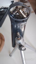 che include: capsula di spugna anti-vento, adattatore per posizionamento su asta microfonica, cavalletto treppiedi da tavolo, astuccio morbido e cavo usb