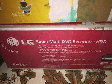 LG RH387 Registratore DVD LG, formati video DivX\MPEG-2\XviD\MPEG-4, formati audio WMA\PCM\MP3, dimensioni 43x4.9x27.5 cm, peso 4 kg. Nuovissimo. Ricevuto in regalo e mai utilizzato. Spese postali a carico dell'acquirente.