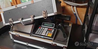 Registratore fiscale portatile per ricevute e scontrini. Equipaggiato di: computer windows con stampante integrata, touch screen 13 pollici, modem per collegamento internet al cloud, stampante dedicata per scontrini fiscali, lettore codici articoli e tessere fidelity, doppia tastiera cassa, display visualizzazione importi cliente. Configurabile anche per l'emissione degli scontrini fiscali. Tutti i dispositivi sono alloggiati in una valigia resistente con tappo trasportabile in modalità trolley. Molto adatto per vendita ambulante ma anche per spostamenti dalla sede abituale di vendita. Prezzo di vendita d'occasione. Valore commerciale della postazione euro 1.800,00.