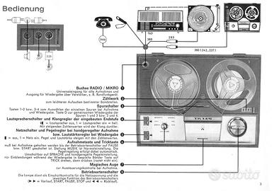 Vendo registratore Grundig TK145 valvolare a bobine, in perfette condizioni estetiche e di funzionamento. Made in Germany negli anni 1967-1969.