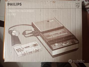 Registratore per giornalisti Philips anni 70 con accessori. Nuovo mai utilizzato con confezione originale.