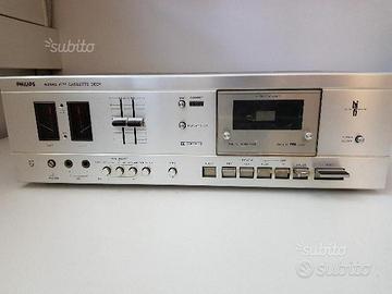 Vendo piastra a cassette modello Philips N2543 anni 80. Si accende ma non funziona, ottima x pezzi di ricambio. Tasti rotti. Non spedisco.