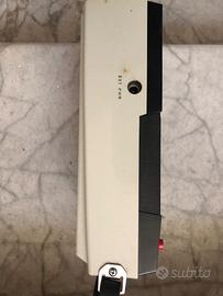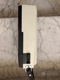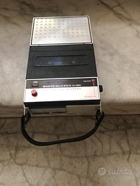 Registratore riproduttore per musicassette Sanyo M-48M. Può funzionare a batteria (4 pile mezza torcia da 1,5V) o con trasformatore da 6V (escluso).