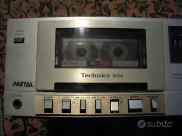 Vendo REGISTRATORE STEREO CASSETTE DECK TECHNICS RS M24 STEREO DOLBY HIFI SILVER VINTAGE TAPE DECK CASSETTE PLAYER RECORDER DECK TAPE STEREO HIFI LED, usato si accende, si sente (play) e registra vedere immagine, Tasti funzioni Play, Rec, Pausa, stop ed eject funzionanti